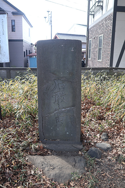 高さ128センチメートル、幅52センチメートル、漢学者・亀田鵬斎により書かれ、五・十の市の世話人により市の神様として文化14年(1817年)に建てられました。