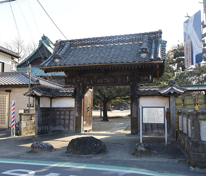 總願寺にあり江戸時代末に創建され、明治6年(1873年)、忍城の北谷門で、解体の時に加須に移築された現存する忍城の唯一の門となっています。