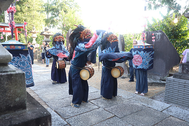 始まりは約300年前といわれています。7月23日に近い土曜日に神社祭として愛宕神社で舞を奉納し、7月24日に近い日曜日に厄病除けとして各戸回りを行います。