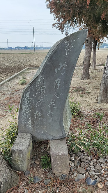 芭蕉没後150年供養のため天保十四(1843)年に相沢栄助(文戯)らが建立したもです。碑には「明月の花かと見えて綿ばたけ」の句が刻まれています。