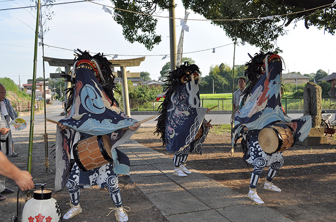 平井祐作流のこの獅子舞は、7月第1土曜日に厄病除けとして各戸を回り、7月第2土曜日の前夜祭と7月第2日曜日の大祭に鷲社にて舞を奉納します。