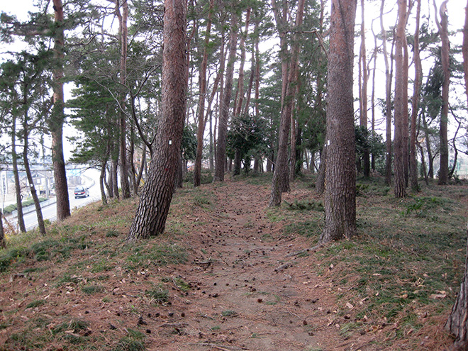 会の川の南岸および古利根川流域に発達した河畔砂丘です。赤城おろし(冬の季節風)により運ばれた砂が自然堤防上に積もりできたものです。周囲と比較すると、4~6m高くなっています。江戸時代に植えられた赤松が多くみられます。